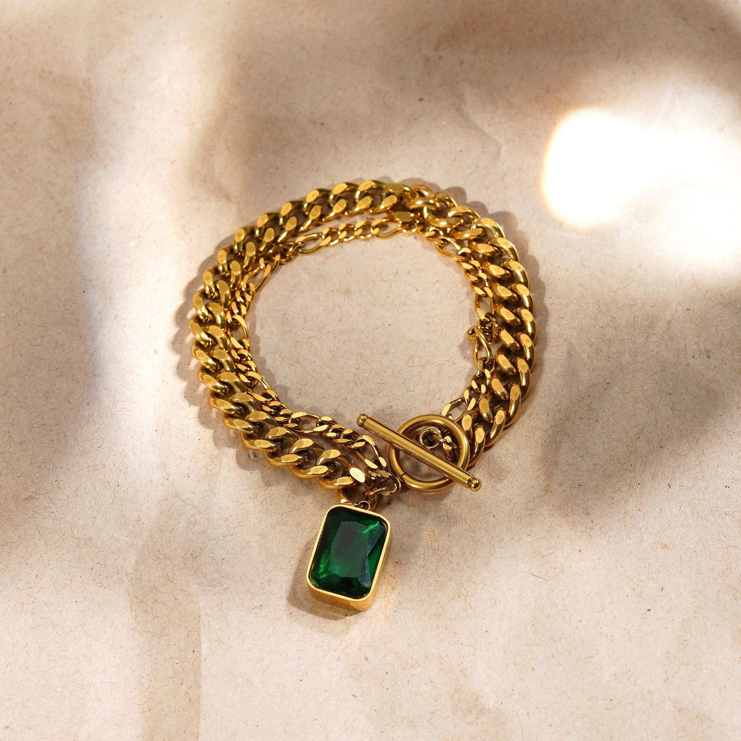 Emerald Green Stone Gold Bracelet: 18K Gold Plated